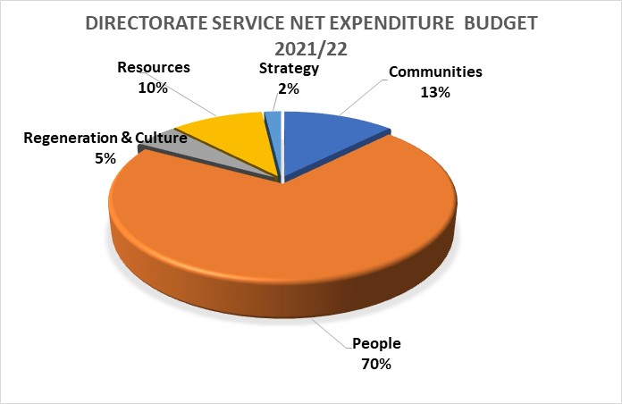 Our budget supports Directorate Service budgets – Adult Social Care & Children’s Services; Communities including housing, street cleansing, waste collection and parking; Regeneration & Culture including parks, leisure and planning; Resources including finance, IT, Revenue & Benefits; Strategy overseeing Communications, HR and Policy. This pie chart represents the breakdown of the Directorate Service Budgets.